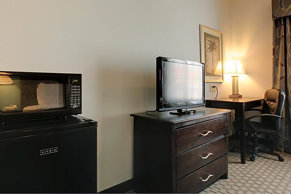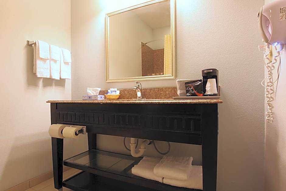 Spacious suite with 1 King Bed, 2 Double Beds, and a kitchen. Non-Smoking. Amenities include free wireless high-speed Internet access, microwave, mini-fridge, coffeemaker, stove, sink, countertop, dishes, kitchen utensils, 32-inch flat screen TV, cable TV, hairdryer, iron, ironing board, alarm clock, desk with lamp, free local calls, and wake-up service. Free continental breakfast is included.